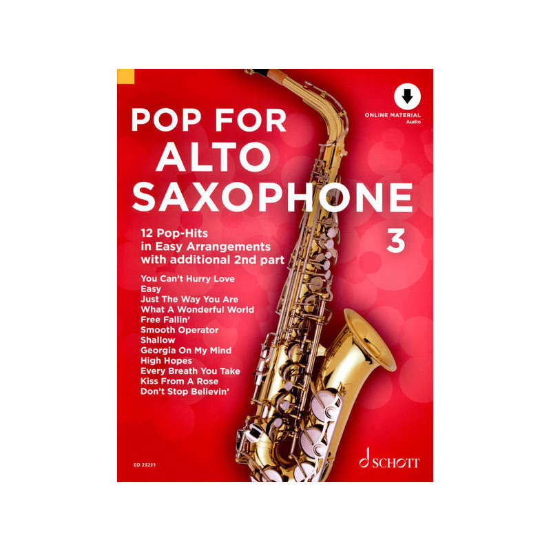 Volume 3 of the Pop for Alto Saxophone series contains 12 easily arranged arrangements for 1-2 players with suitable playbacks for every song.