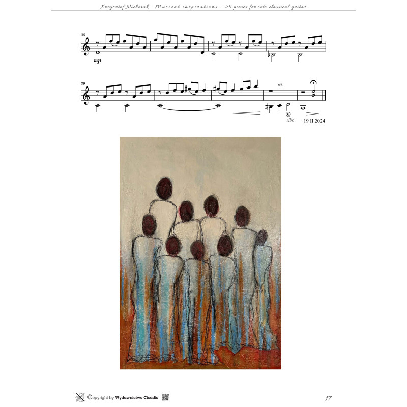 Warto zwrócić uwagę na oryginalne, barwne prace plastyczne zawarte w zeszycie autorstwa Arlety Świątek-Kuś oraz reprodukcje obrazu Gitara na okładce wydawnictwa, który stworzyła znana artystka i poetka z Koszalina Krystyna Janiszewska. Jest to nowa, interesująca propozycja wydawnictwa Cicadis zarówno dla zupełnie początkujących jak i zaawansowanych już gitarzystów.