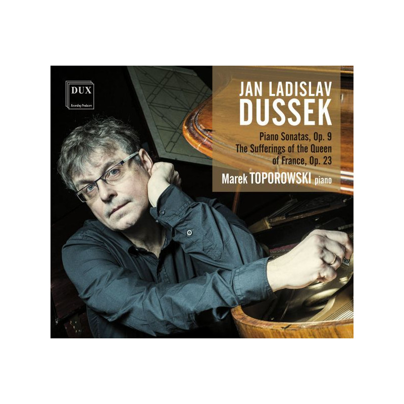 Urodzony 12 lutego 1760 r. Jan Ladislav Dussek należy do najbardziej rozpoznawalnych twórców przełomu klasycyzmu i romantyzmu. Jego bogaty artystyczny dorobek zyskał uznanie głównie za sprawą innowacyjnych, jak na owe czasy, dzieł fortepianowych oraz wielu symfonii. Dussek w znacznej mierze przyczynił się do rozpowszechnienia w Europie angielskich fortepianów, co nie pozostało bez znaczenia dla dalszego rozwoju budownictwa tych instrumentów. Niniejszy album zawiera trzy Sonaty fortepianowe op. 9 oraz cykl Cierpienia francuskiej królowej op. 23 wykonane przez cenionego na całym świecie Marka Toporowskiego.
