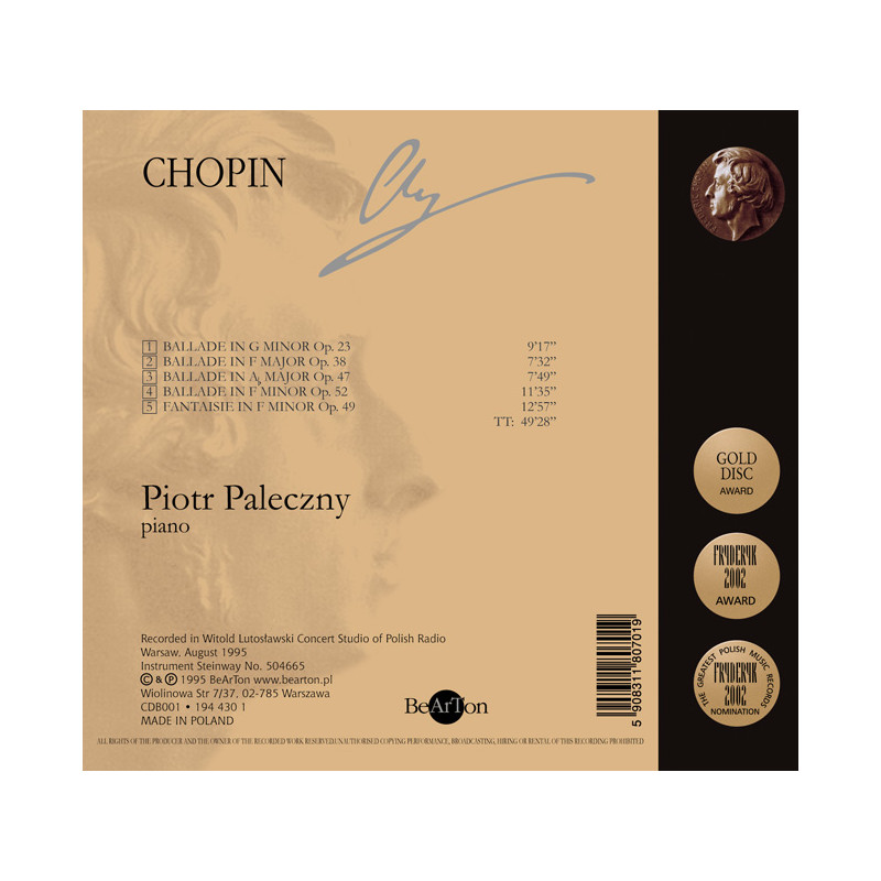 Wykonawca: Piotr Paleczny – fortepian Zawartość płyty: Ballada g-moll op. 23 – 9’17” Ballada F-dur op. 38 – 7’32” Ballada As-dur op. 47 – 9’49” Ballada f-moll op. 52 – 11’35” Fantazja f-moll op. 49 – 12’57”