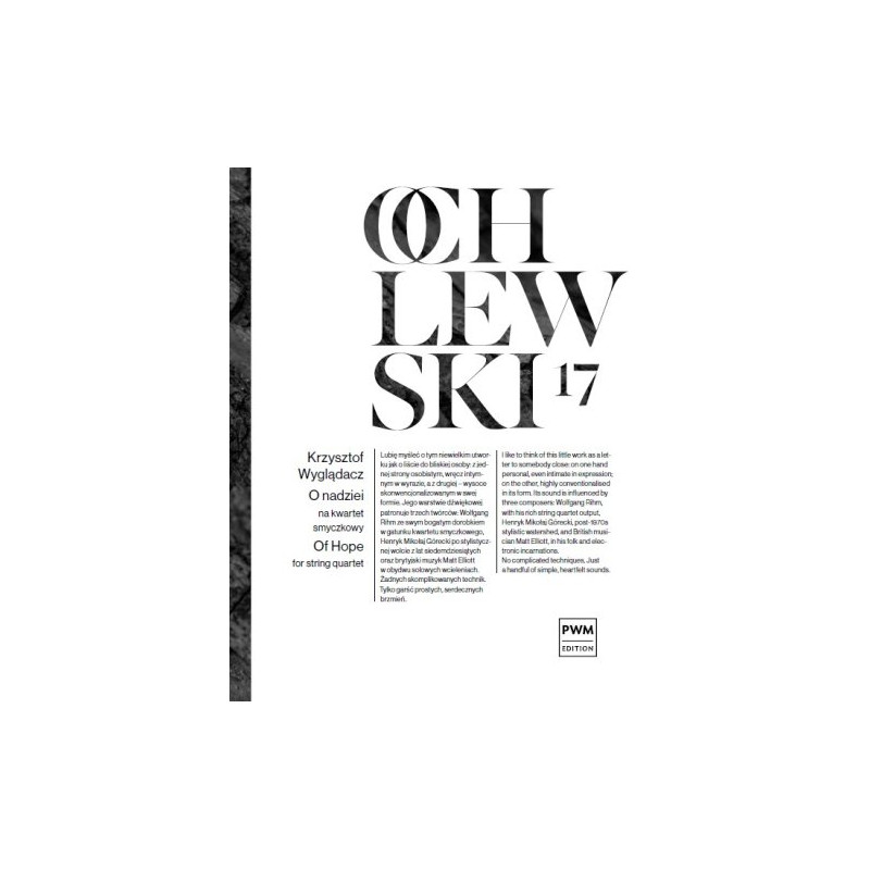 Lubię myśleć o tym niewielkim utworku jak o liście do bliskiej osoby: z jednej strony osobistym, wręcz intymnym w wyrazie, a z drugiej – wysoce skonwencjonalizowanym w swej formie. Jego warstwie dźwiękowej patronuje trzech twórców: Wolfgang Rihm ze swym bogatym dorobkiem w gatunku kwartetu smyczkowego, Henryk Mikołaj Górecki po stylistycznej wolcie z lat siedemdziesiątych oraz brytyjski muzyk Matt Elliott w obydwu solowych wcieleniach. Żadnych skomplikowanych technik. Tylko garść prostych, serdecznych brzmień. Krzysztof Wyglądacz